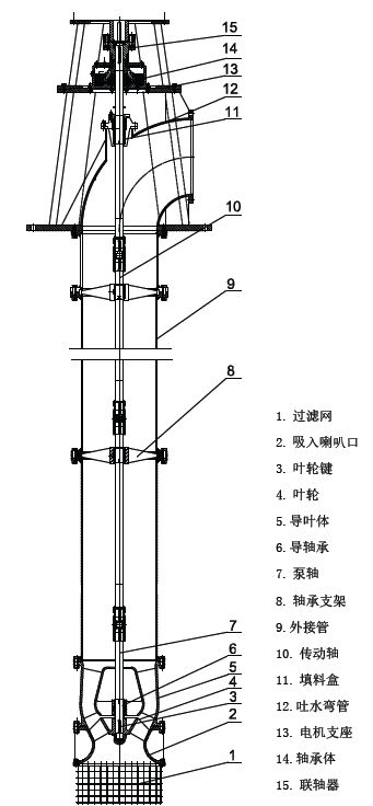 VTM系列立式長(zhǎng)軸透平泵剖面圖